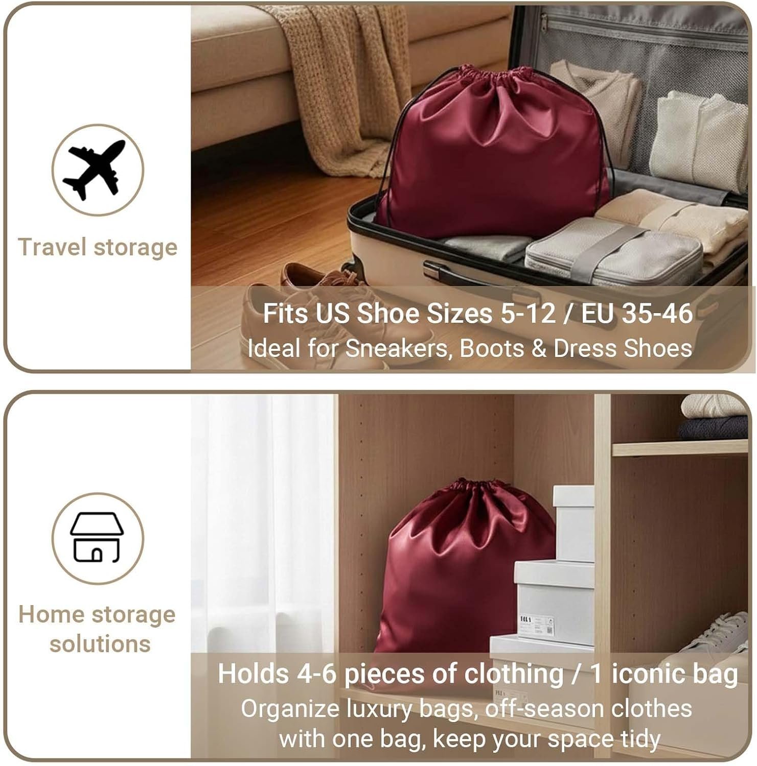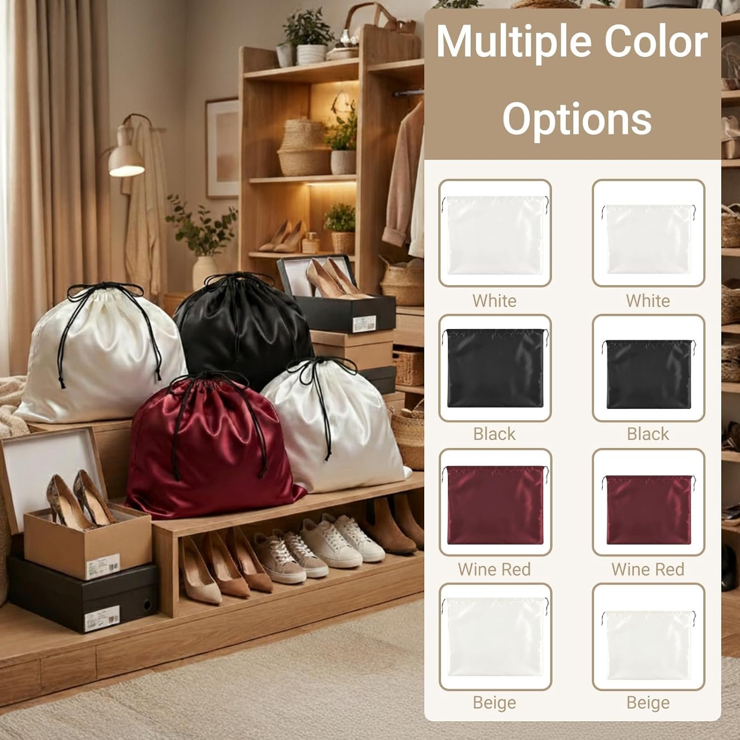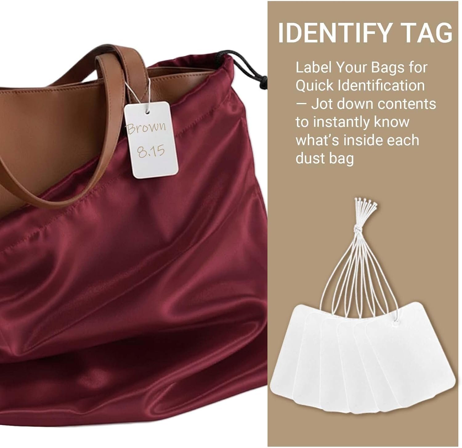 These bags are made from premium, breathable satin fabric, selected for its softness, durability, and gentleness on delicate items like leather handbags and fine hardware. This high-quality material resists tears and maintains shape after repeated use and washing.