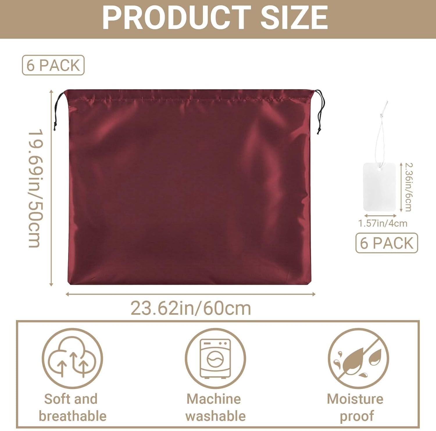 Each bag boasts impressive dimensions of 19.7″ x 23.6″, providing ample space for most handbags, shoulder bags, designer purses, wallets, small accessories, clutches, and totes. This spacious design accommodates a wide range of items without compromising fit or protection. The convenient 6-pack format delivers exceptional value, allowing you to outfit an entire collection effortlessly—ideal for organizing closets, luggage packing, or retail display storage. Businesses benefit from bulk purchasing options, stocking up to meet demand in fashion boutiques, department stores, or online marketplaces while maintaining organized inventory.